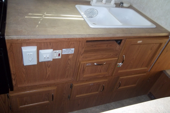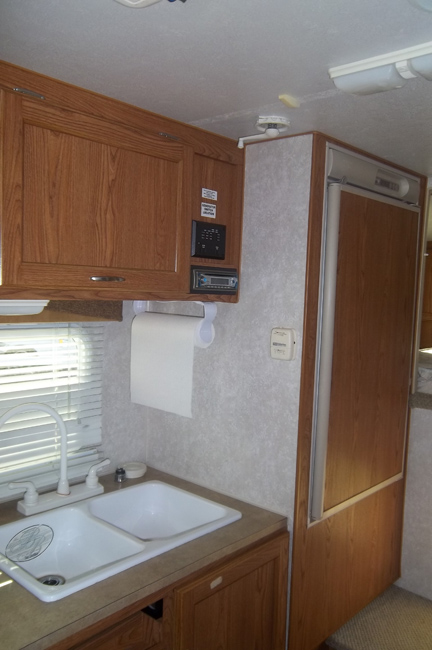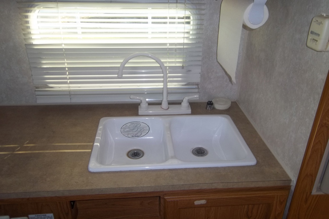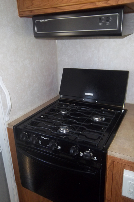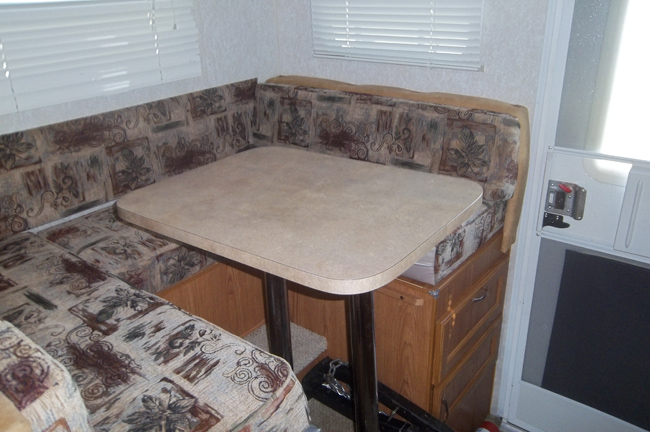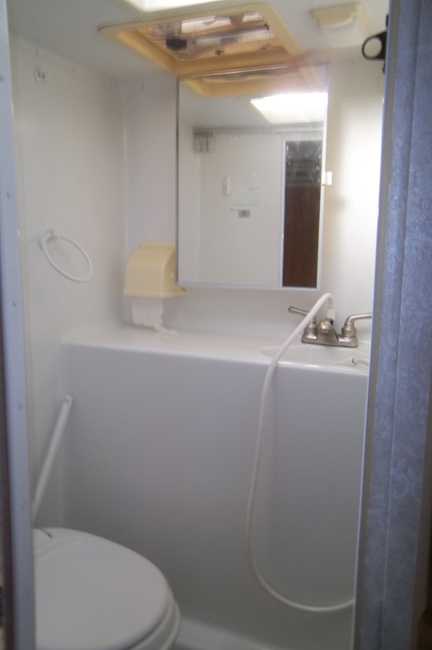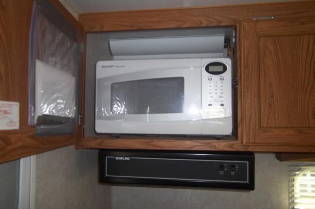 Interior: Kitchen dinette converts to bed, AM/FM/CD stereo, dual sink, DSI hot water heater, wet bath with toilet and shower, medicine cabinet with mirror, stove/range, microwave, lots of kitchen storage, refrigerator (AC or propane), furnace, air conditioner, Fantastic Fan, TV mount infrastructure in sleeping quarters, large queen mattress, wardrobe closets.