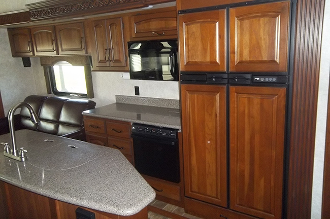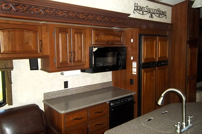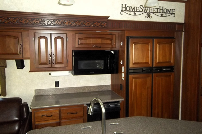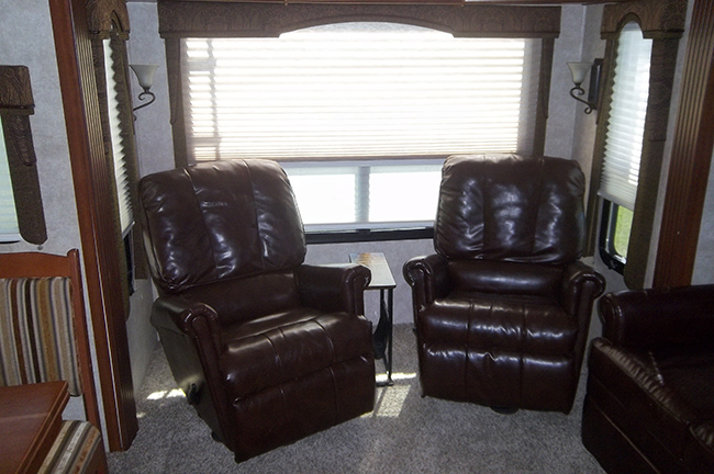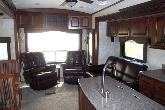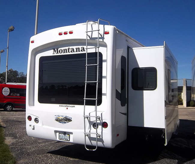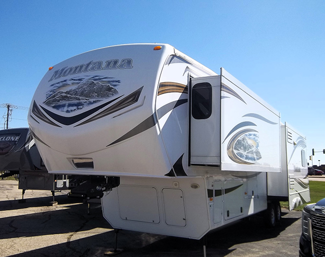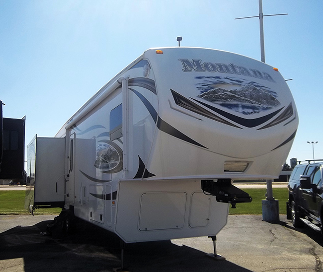 Well maintained 2013 Montana Fifth Wheel Model 3725RL. Full Time Living Package, MorRyde Fifth Wheel Hitch Pin, 6-point Hydraulic Auto-Leveling System, 15,000 BTU A/C, 2nd low-profile bedroom A/C, power awning, upgraded easy-access fold-out entrance step, folding entrance assist handle, central vac system, sofa sleeper unit, two swivel recliners, free-standing dinette, day/night shades, ceiling fan, 12 CF four-door refrigerator/freezer, kitchen island with solid surface countertops, convection microwave, three-burner range top with oven, electric fireplace, entertainment center, LED TV.